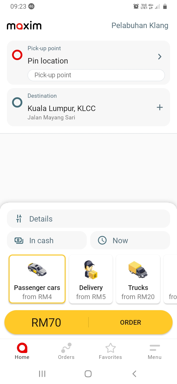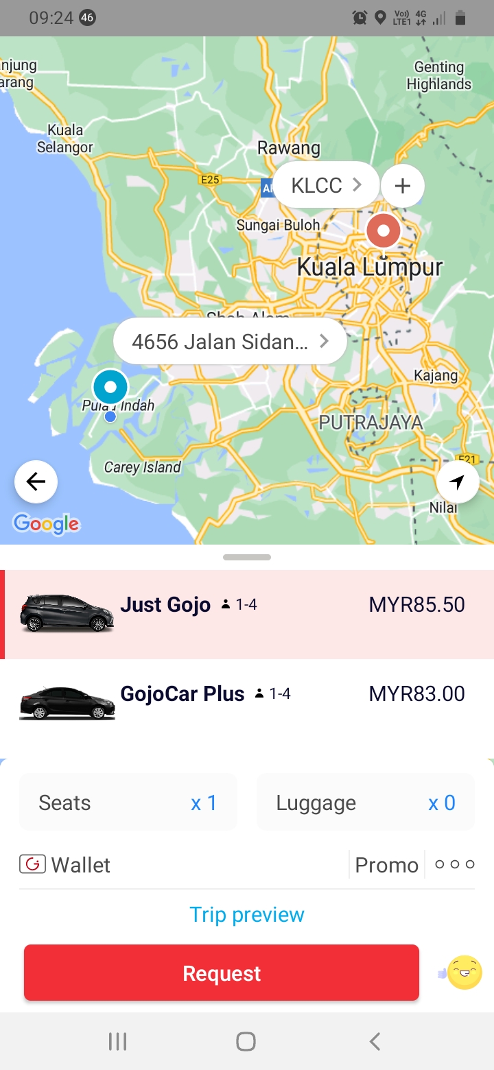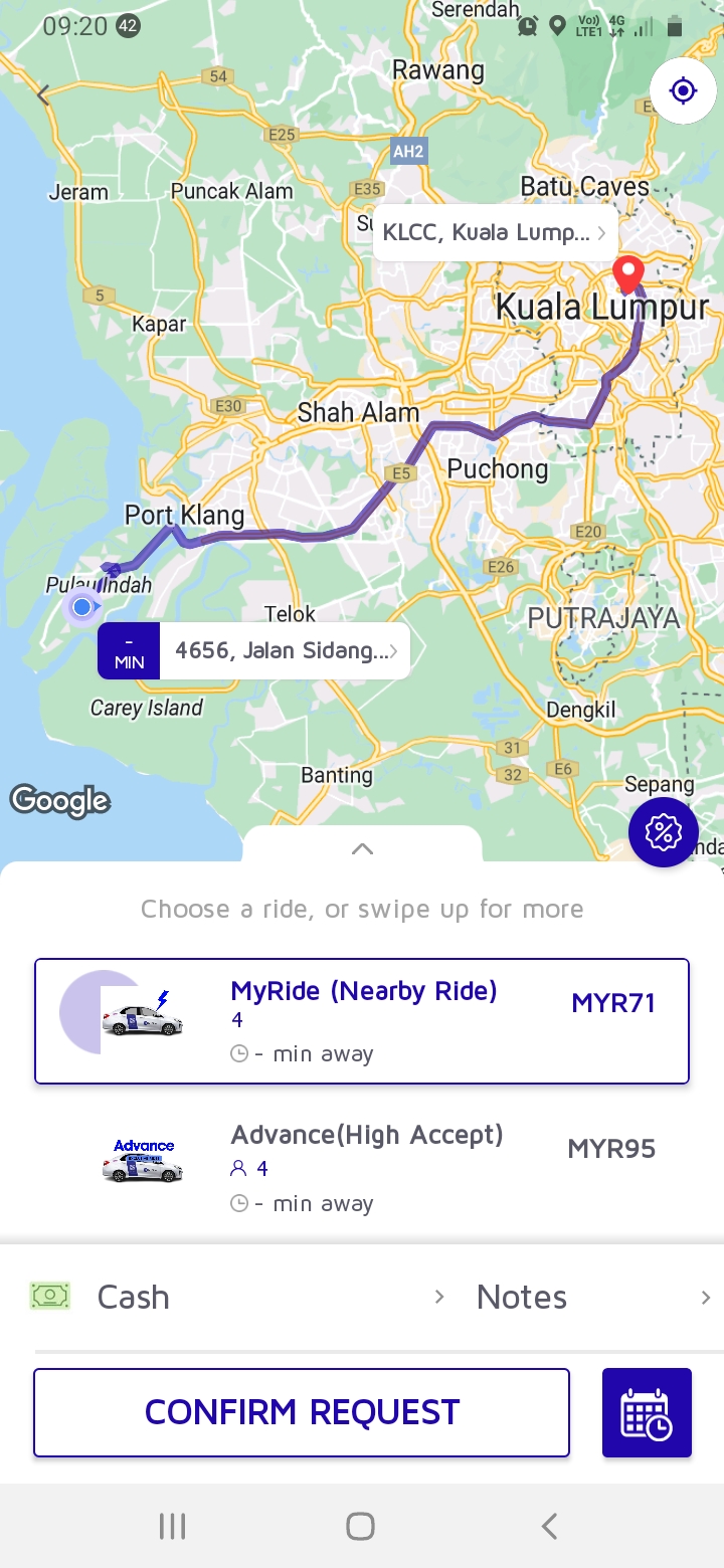 Kadar tambang applikasi ehailing tempatan pada hari ini 4.6.24 10:00 pagi..