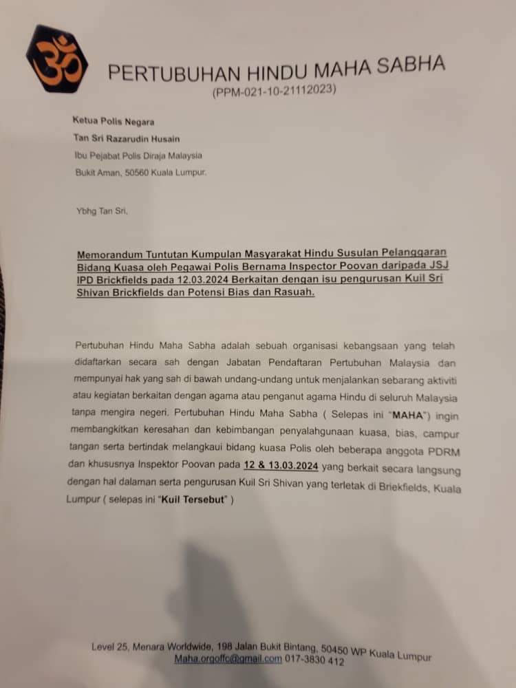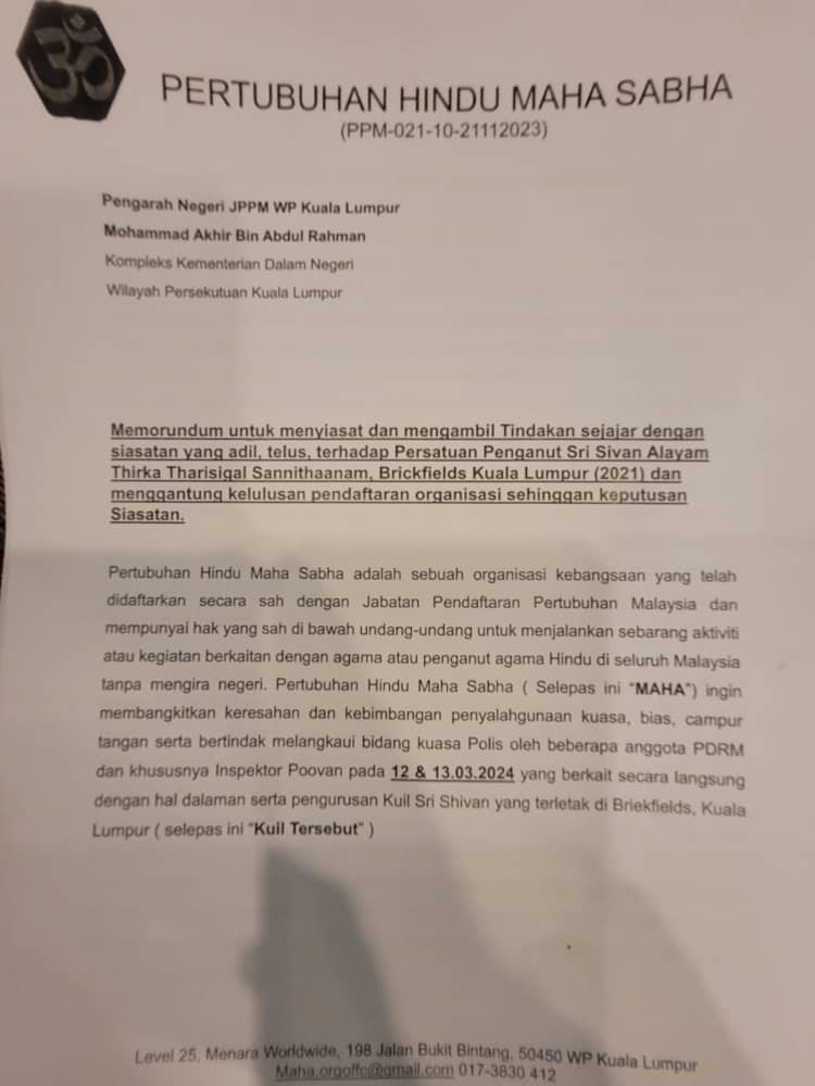 Pertubuhan Hindu Maha Sabha mendakwa pertubuhan mereka adalah paling layak dan sah untuk mentadbir Kuil Sri Shivan Brickfield yang sudah berusia 50 tahun.