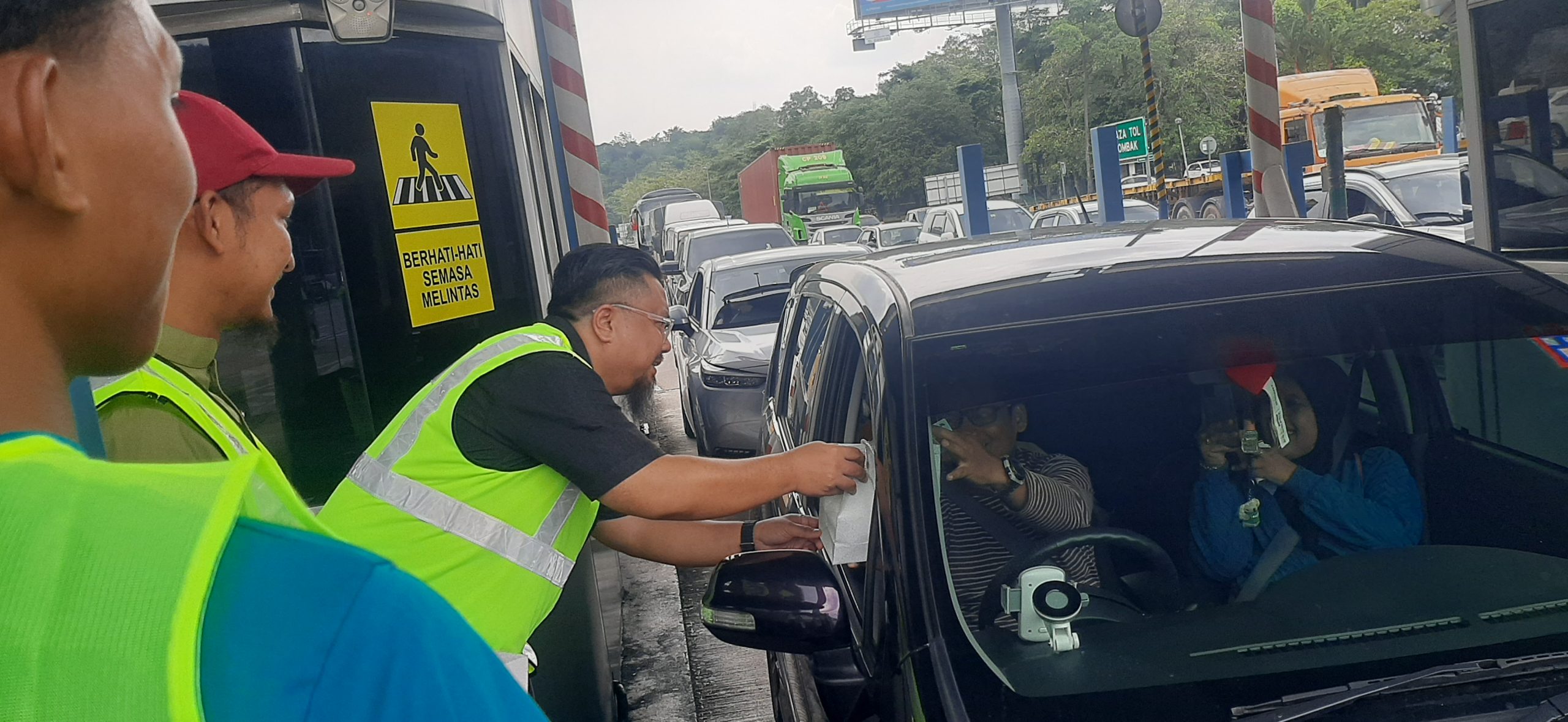Yayasan Ikhlas, ANIH dan MIROS salurkan 300 pek on the go Ramadhan di Plaza Tol Gombak.
